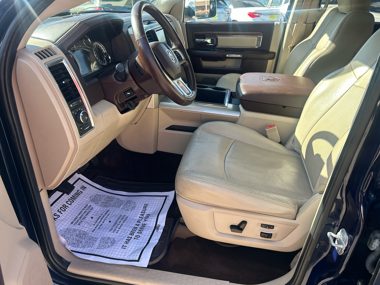 *****LOCAL TRADE*****2014 RAM 1500 LARAMIE FEATURING LEATHER HEATED AND COOLED SEATS, NAVIGATION, BACK UP CAMERA, AIR RIDE, SUNROOF, USB AND AUX PORT, HEATED STEERING WHEEL, REMOTE START, 2 KEYS, RAM BOXES, AND MUCH MORE! BUY WITH CONFIDENCE THIS RAM IS FRESHLY SERVICED AND COMES WITH A 6 MONTH/6,000 MILE SERVICE AGREEMENT ON THE ENGINE AND TRANSMISSION! CALL FOR MORE INFORMATION AND TO SCHEDULE A TEST DRIVE TODAY!!